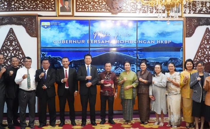 Sementara itu, Pendeta Dr. Victor Tinambunan, M.ST dalam sambutannya menyampaikan ucapan terima kasih atas sambutan Gubernur Al Haris bersama OPD terkait di rumah dinas Gubernur Jambi. “Saya berserta Pengurus dan Anggota Gereja HKBP di Provinsi Jambi sangat-sangat berterima kasih sekali atas sambutan Bapak Gubernur berserta OPD terkait, disini kami melaporkan akan mengadakan berbagai kegiatan diantaranya Pesta Bona Taon HKBP Distrik 25 Jambi. Untuk itu kami akan mengundang bapak untuk hadir diacara tersebut,” ucapnya.