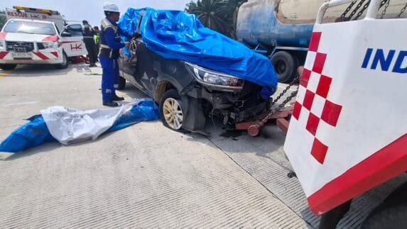 Batu Bara-icwpost ISebuah kecelakaan tragis terjadi di Jalan Tol Indrapura-Kisaran Km 134 jalur B, Jumat (6/3), sekitar pukul 09.40 WIB. Kecelakaan melibatkan mobil pribadi jenis Innova dengan nomor polisi BK 1873 SX yang dikemudikan oleh Opel Hutagalung, dan sebuah truk box berplat A 9485 ZB yang dikemudikan oleh Jon Rihat Parulian Manalu.