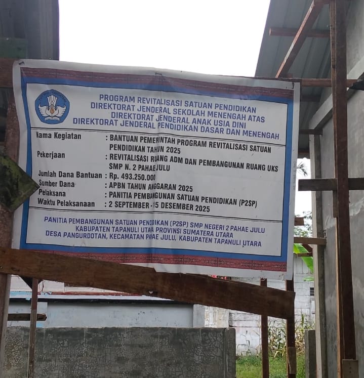 Sesuai hasil investigasi wartawan dilapangan yang tergabung dalam tim media Taput salah satu sekolah penerima dana revitalisasi SMP di kecamatan Pahae Julu dengan pagu anggaran Rp 493.250.000 . jenis pekerjaan revitalisasi ruang ADM dan pembangunan ruang UKS.