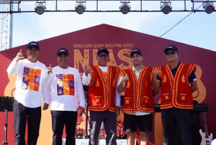 Nas Selatan-icwpost I Kejuaraan Surfing Internasional Nias Pro 2025 WSL QS 6000 resmi dibuka oleh Deputi Bidang Pengembangan Industri Olahraga Kemenpora RI, Dr. Raden Isnanta, M.Pd di Pantai Sorake Kecamatan Luahagudre Maniamolo Sabtu (21/6).