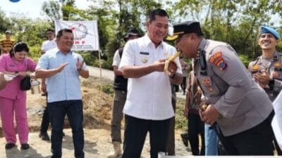 Bupati pun tampak tertawa bahagia. Dalam momen yang sederhana namun penuh makna itu, beliau mengambil sepotong pisang, membukanya, dan secara spontan menyuapkannya kepada Kapolres Ferry Mulyana Sunarya dan sebaliknya. Adegan ini disambut tawa hangat dari hadirin, termasuk para tokoh dan warga sekitar.