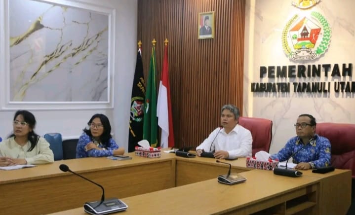 Tapanuli Utara-icwpost I Wakil Bupati Tapanuli Utara Dr. Deni Lumbantoruan pimpin rapat melalui zoom meeting terkait persiapan Rakernas V MPK di Indonesia yang diikuti Ketua Umum MPK Indonesia Handi Irawan, Ketua MPK Wilayah Sumut Aceh Dr. RE. Nainggolan dan dipandu host Asisten Administrasi Umum Binhot Aritonang, di Ruang Rapat Aula Mini Kantor Bupati Taput, Jumat (17/04).