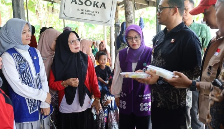 Tanjungbalai-icwpost I Wakil Wali Kota Tanjungbalai Muhammad Fadly Abdina didampingi Staf Ahli TP PKK Desi Fadly Abdina bersama jajaran melaksanakan monitoring pelaksanaan Program Makanan Bergizi Gratis (MBG) di Posyandu Asoka, Jalan Sei Rampah Lingkungan I, Kelurahan Sei Raja, Kecamatan Sei Tualang Raso (STR), Kamis (2/4).