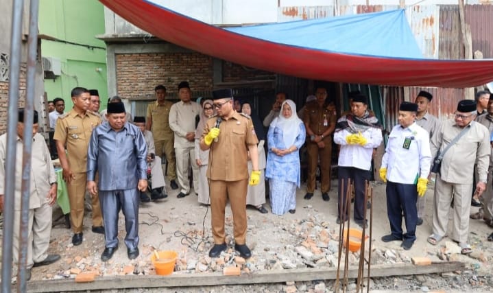 Tanjungbalai-icwpost I Wakil Wali Kota Tanjungbalai, Muhammad Fadly Abdina menghadiri sekaligus melakukan Peletakan Batu Pertama Pembangunan Masjid Umul Qura YMPI Sei Tualang Raso, bertempat dihalaman Mas YMPI Sei Tualang Raso, Jalan besar Teluk Nibung Kelurahan Sumber Sari Kecamatan Sei Tualang Raso, Kota Tanjungbalai, Senin (5/1).