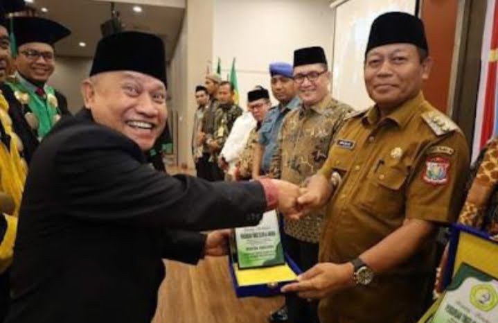 Dalam acara tersebut, Wali Kota Waris juga menerima penghargaan cenderamata dari Perguruan Tinggi Islam AL-Hikmah. (z)